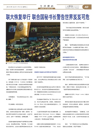 联大恢复举行 联合国秘书长警告世界岌岌可危