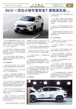 17%,几乎是 SUV 销量的三分之一。 “它们的车身也比较高,这意味着如果发生侧面碰 式会更加残酷。”